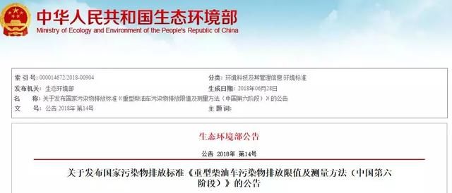 重型柴油車國六標準終于出來了!2019年7月1日實施!