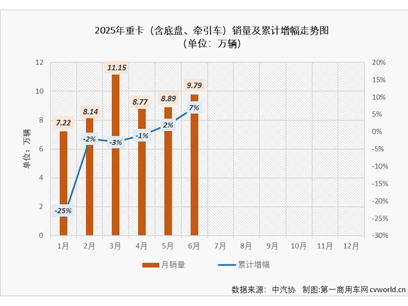 2025年上半年,重卡市場累計銷售53.92萬輛,同比增長7%,全年銷量重返100萬輛可能性極大。